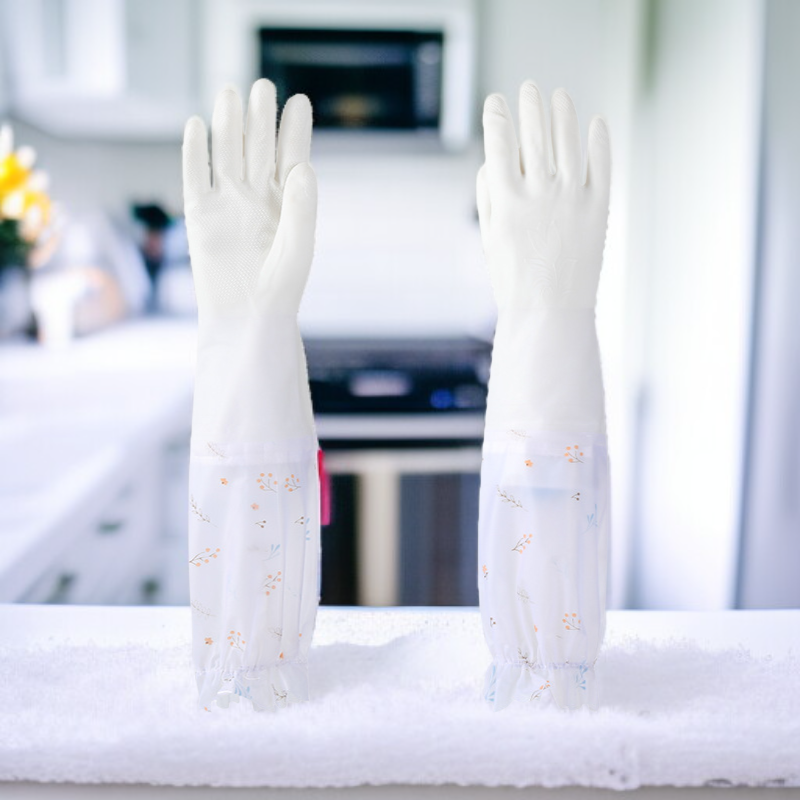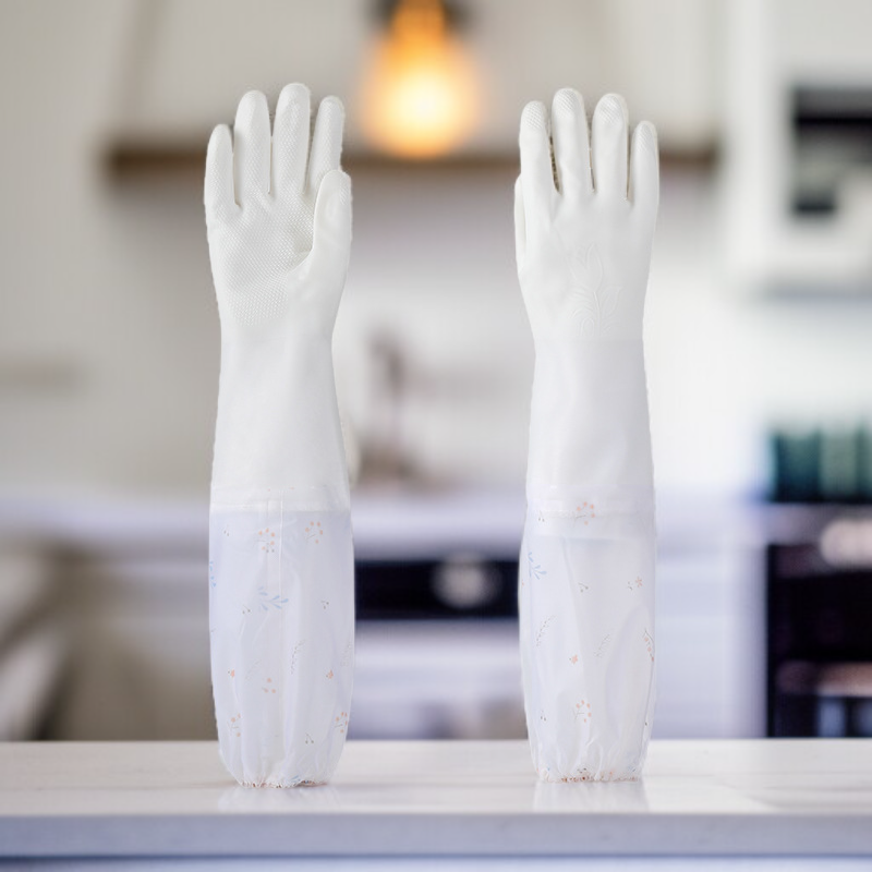 ● 柔らかくて丈夫なラバー素材を使用し、長時間の家事でも手に優しくフィットします。
